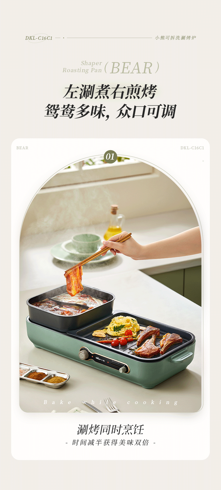 商品名称:小熊(Bear)烤涮一体两用锅 烤肉锅电烤盘 家用电烧烤炉