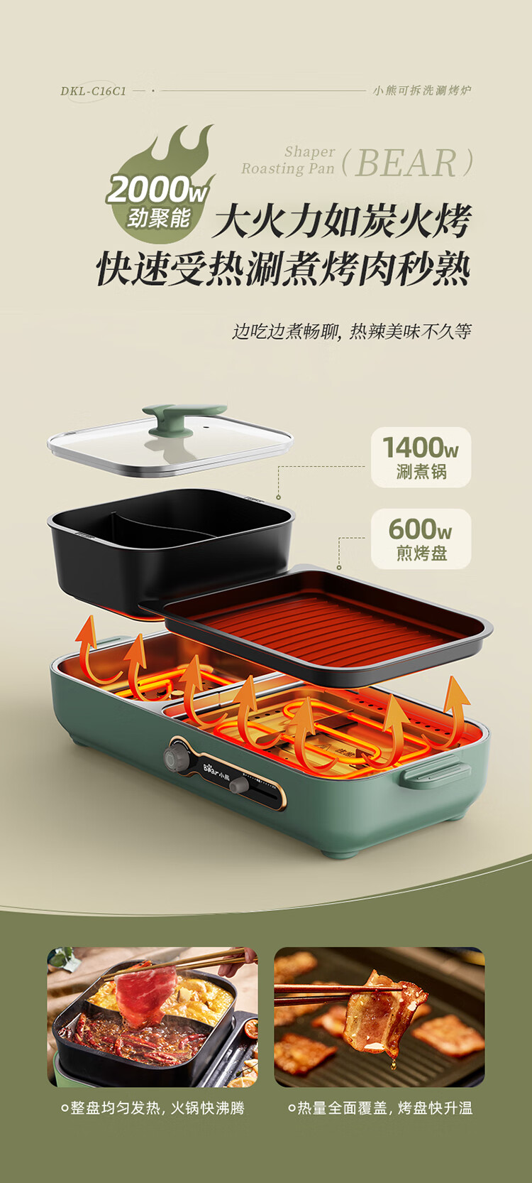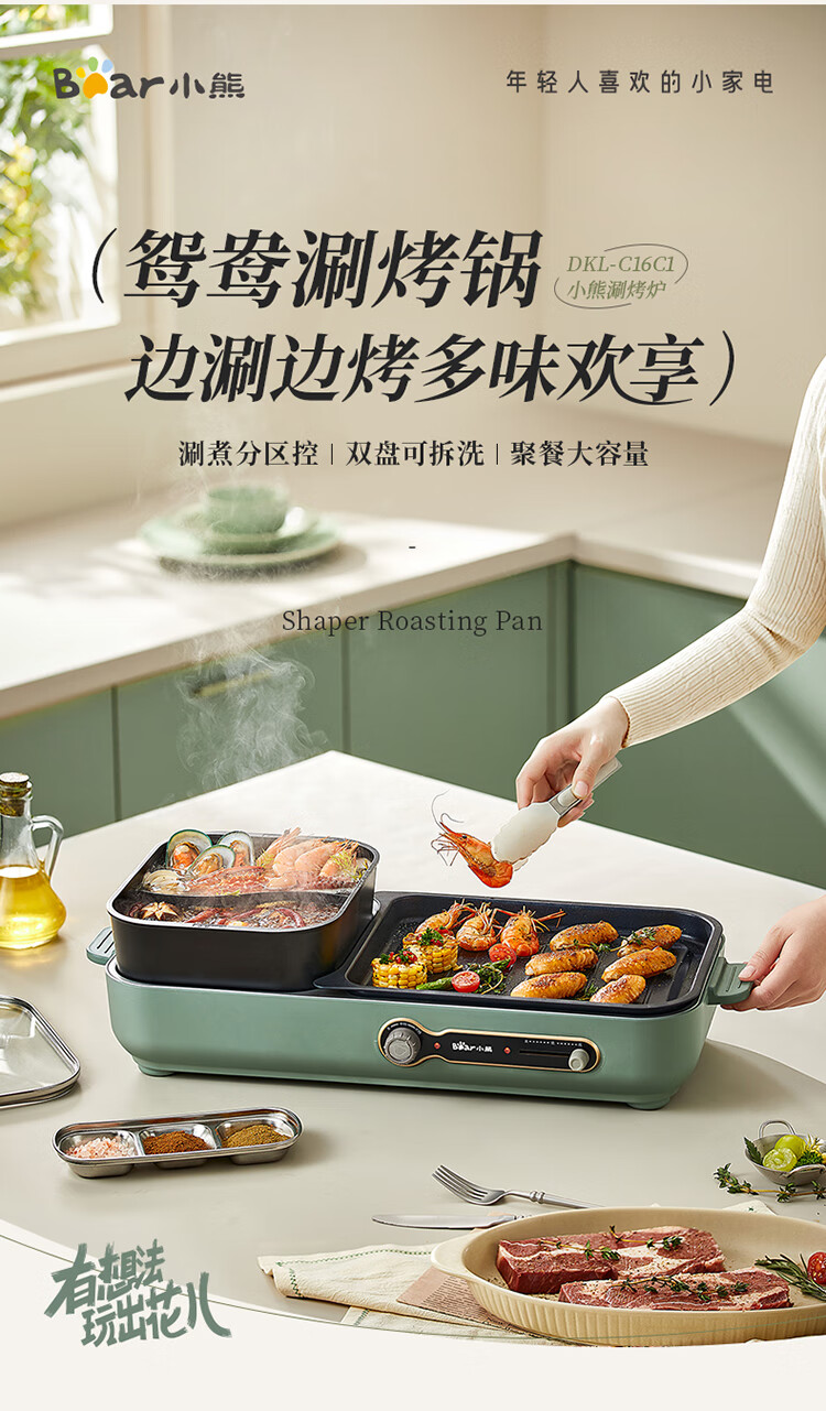 小熊(Bear)烤涮一体两用锅 烤肉锅电烤盘 家用电烧烤炉