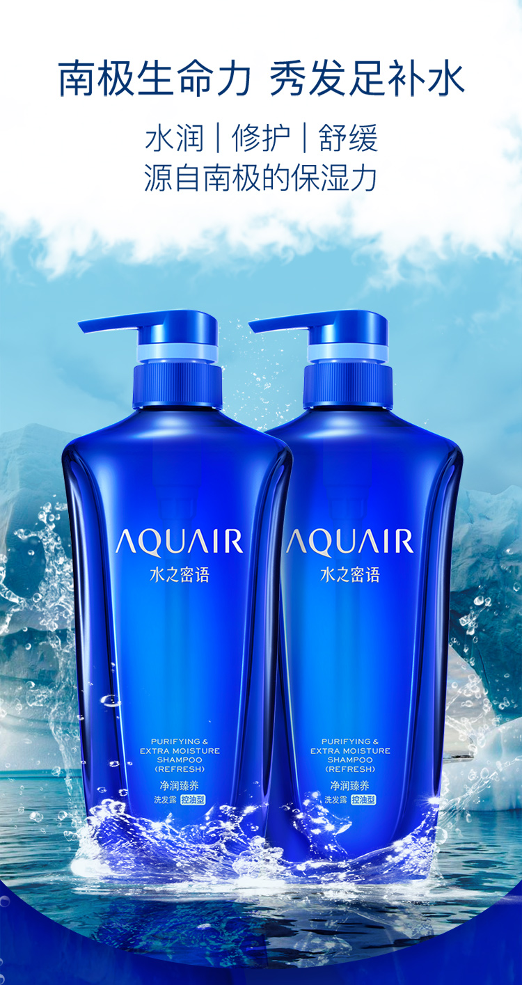 商品名称:水之密语(AQUAIR)净润臻养(控油型)洗发水套装600ml*2蓬松滋润男女士洗发露洗头膏
