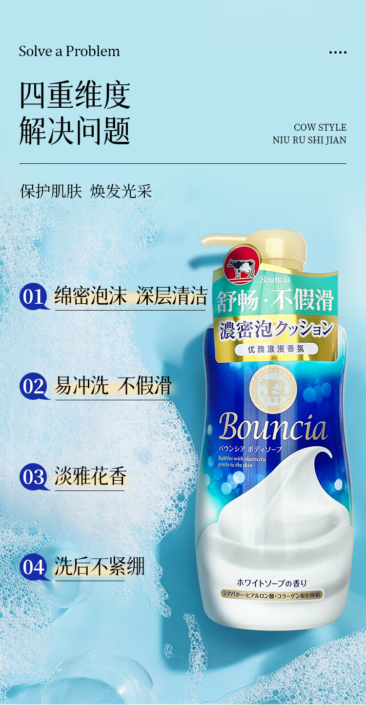 牛乳石硷碱cow美肤沐浴乳淡雅花香480ml沐浴露泡沫丰富持久留香易冲洗