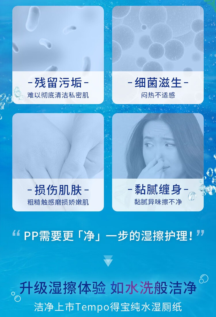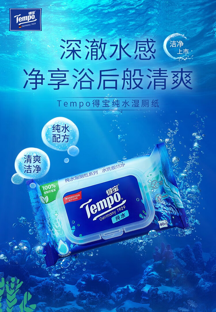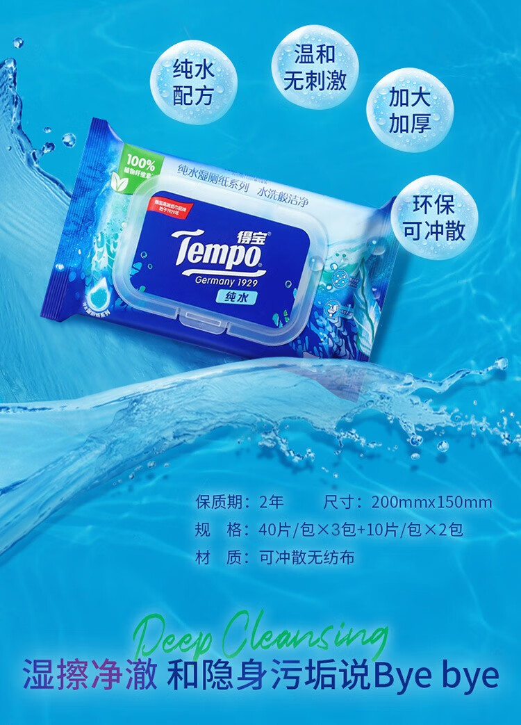 商品名称:得宝(TEMPO)纯水可降解洁厕湿巾私处清洁湿厕纸40片3包+10片2包单提组合装