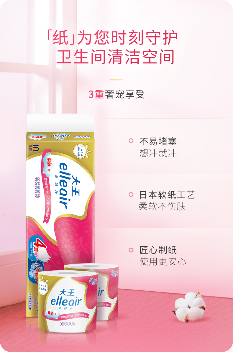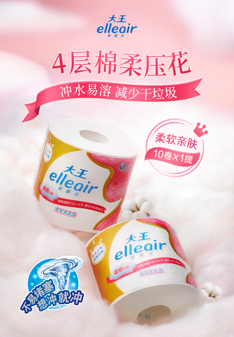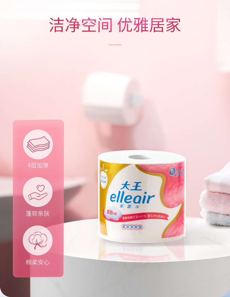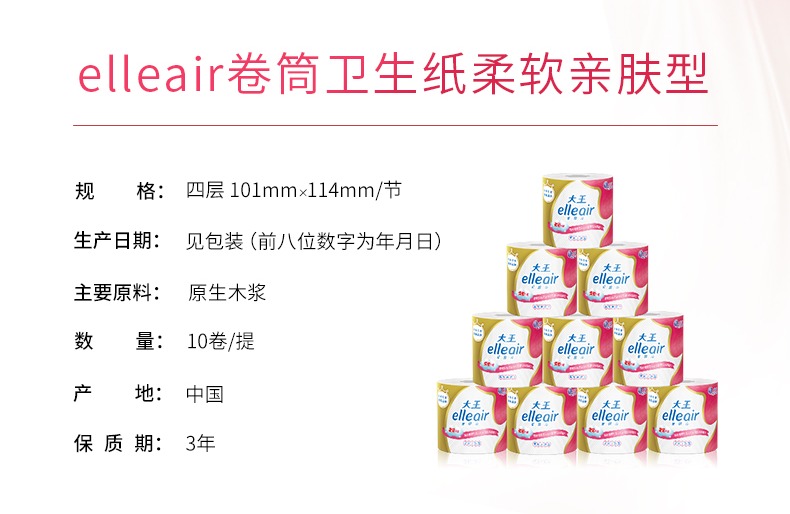 商品名称:大王Elleair柔软亲肤型卷筒卫生纸10卷4层140g可溶解卷筒纸现货